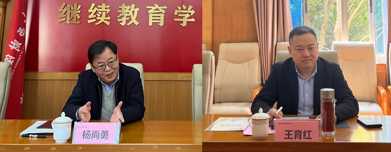 杨尚勇代表学院对王育红一行的到来表示热烈欢迎,就学院办学历史和学历教育、非学历教育、社会服务等方面情况做了简要介绍,并详细介绍了我院同等学力申硕项目的整体情况,以及项目规范化教学和流程管理的做法。