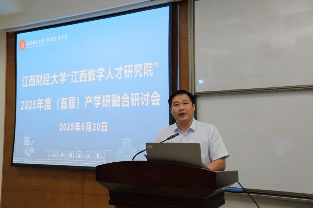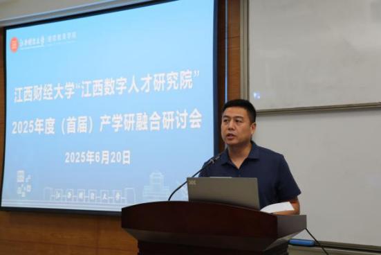 浪live 科研处处长谌飞龙宣读了学校《关于成立浪live 江西数字人才研究院的通知》,他在讲话中强调,2025年4月,经学校研究决定成立“江西数字人才研究院”,这是学校推进一流数字化高等财经类院校,深化数字化人才培养产学研融合的重要举措,研究院要紧扣服务社会,助力学校高质量发展中心任务,有效开展工作。