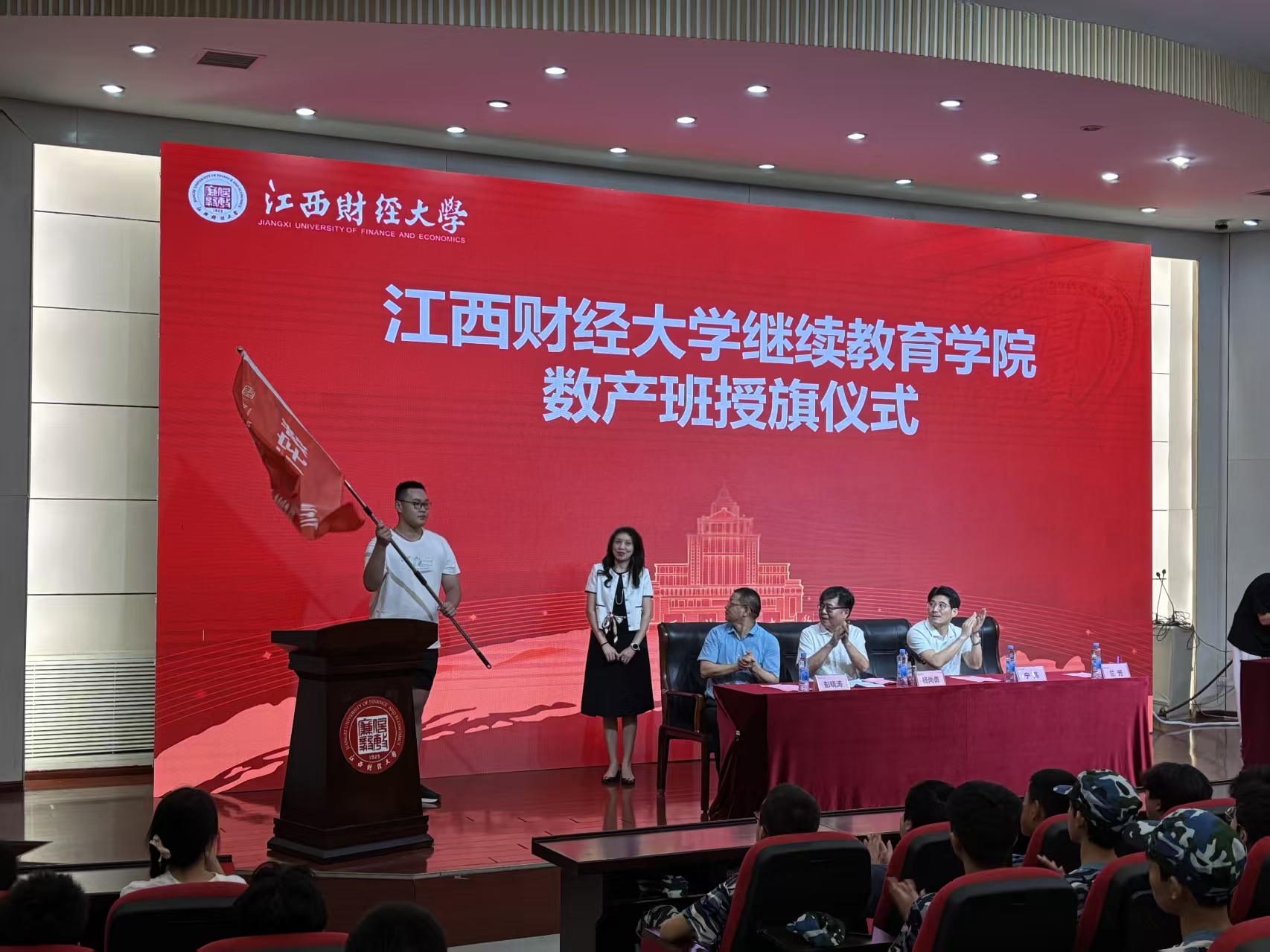 彭晓涛副院长为上一年度优秀学员颁发荣誉证书,兰芳副院长为2025级数产班授班旗,仪式庄重而热烈。